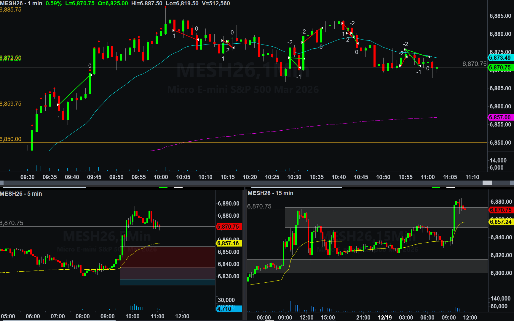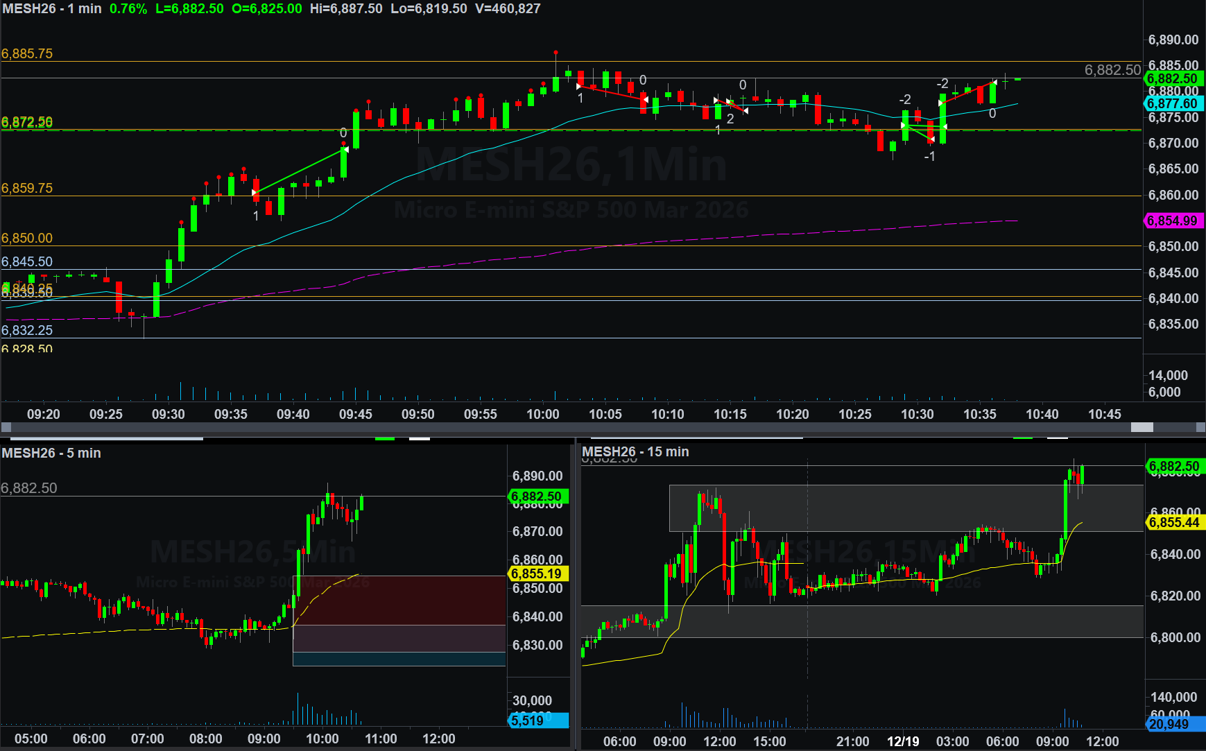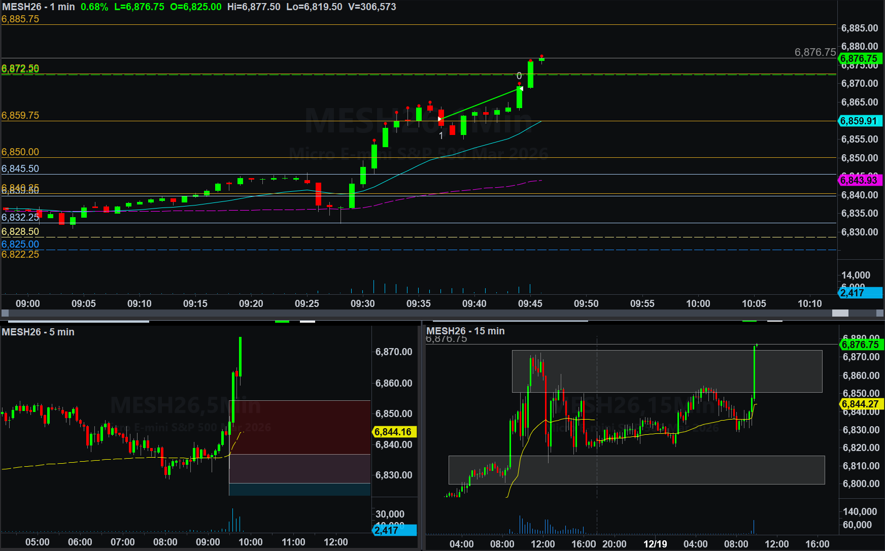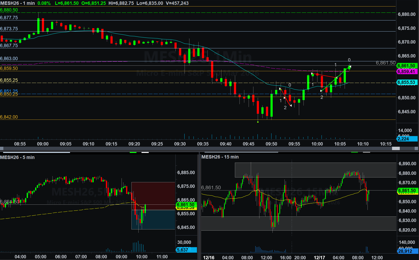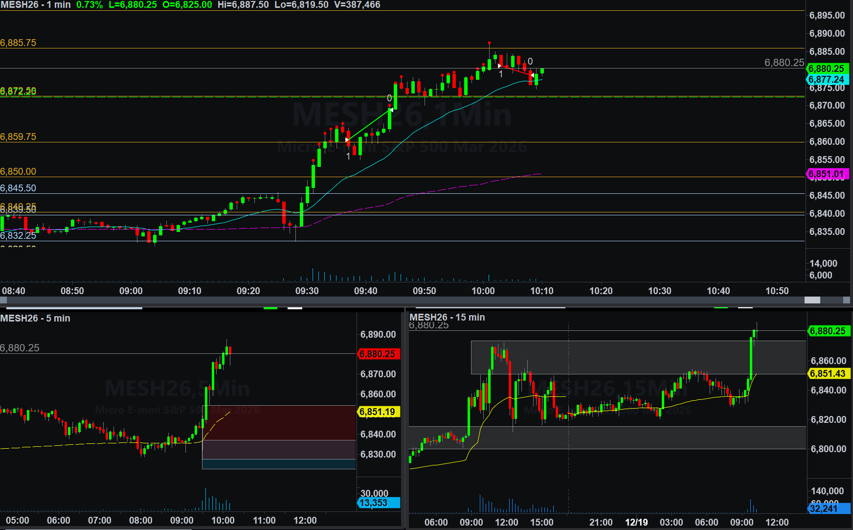 | Dec. 19, 2025, 9:43 a.m. | Future | MESH26 | TradeStation | Futures, | Early Entry, Price Action, Trend Continuation, | Long | 1.00 | 6860.50 |
