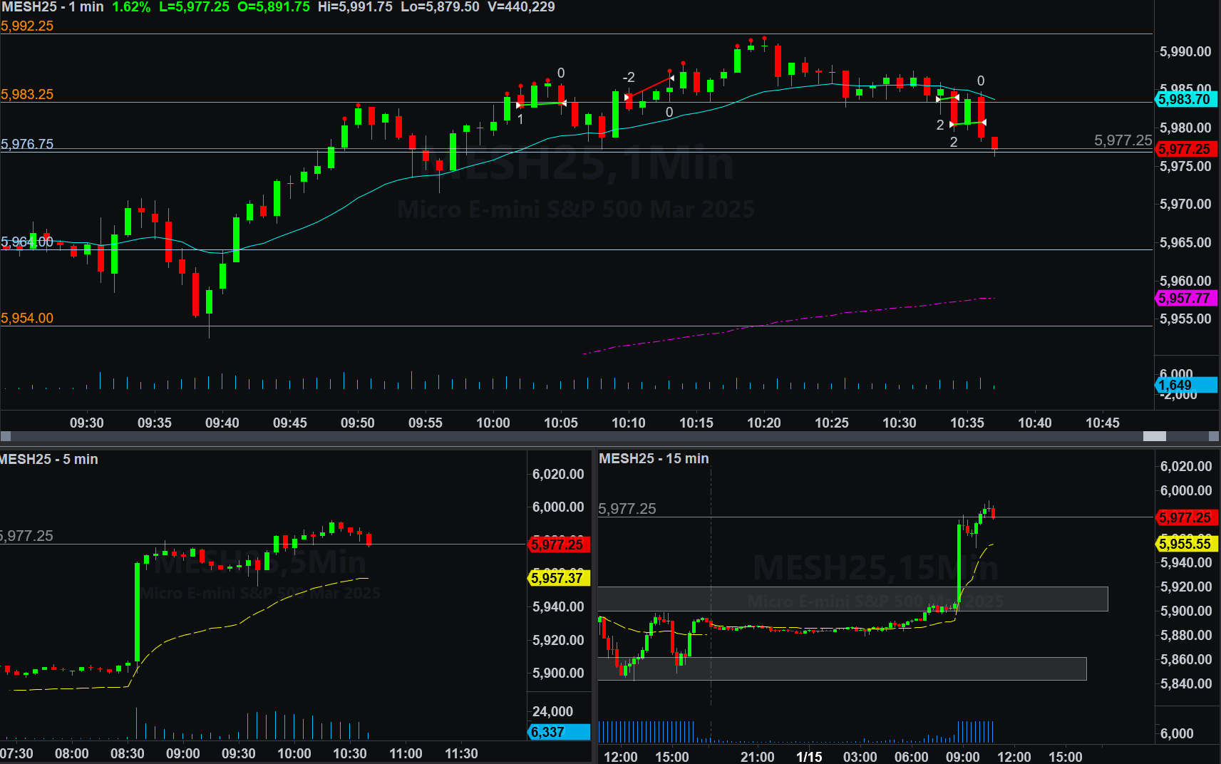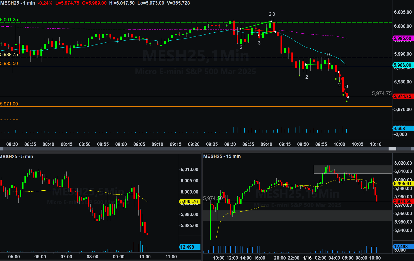 | Jan. 16, 2025, 10:30 a.m. | Future | /MES | TradeStation | Futures, | FOMO, Guessing/Gambling, No Set Up, | Long | 2.00 | 11963.00 |