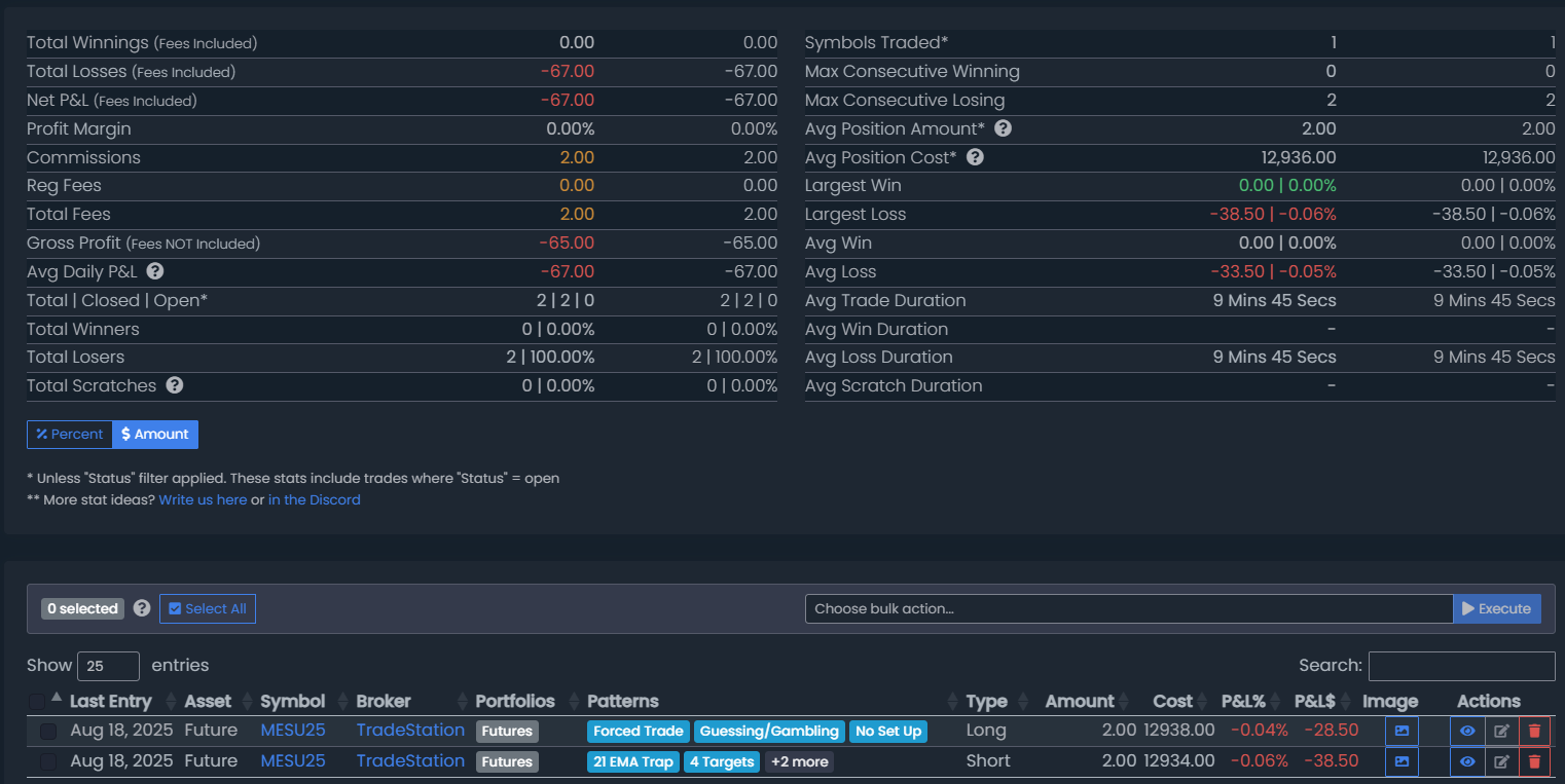 August 18, 2025 (2 Trades) (-$65.00)