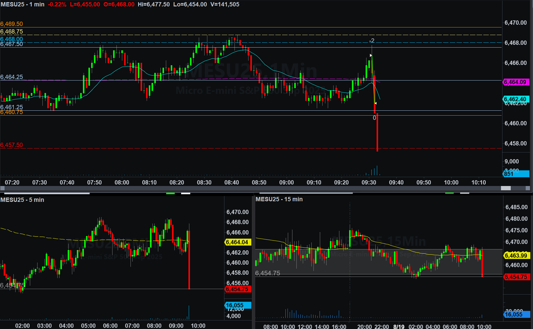 - Target on this trade was Yesterday's LOD (6457.50) - closed because I made back 75% of yesterdays loss 2mins into market open (I was worried it would bounce back up from PM low consolidation)