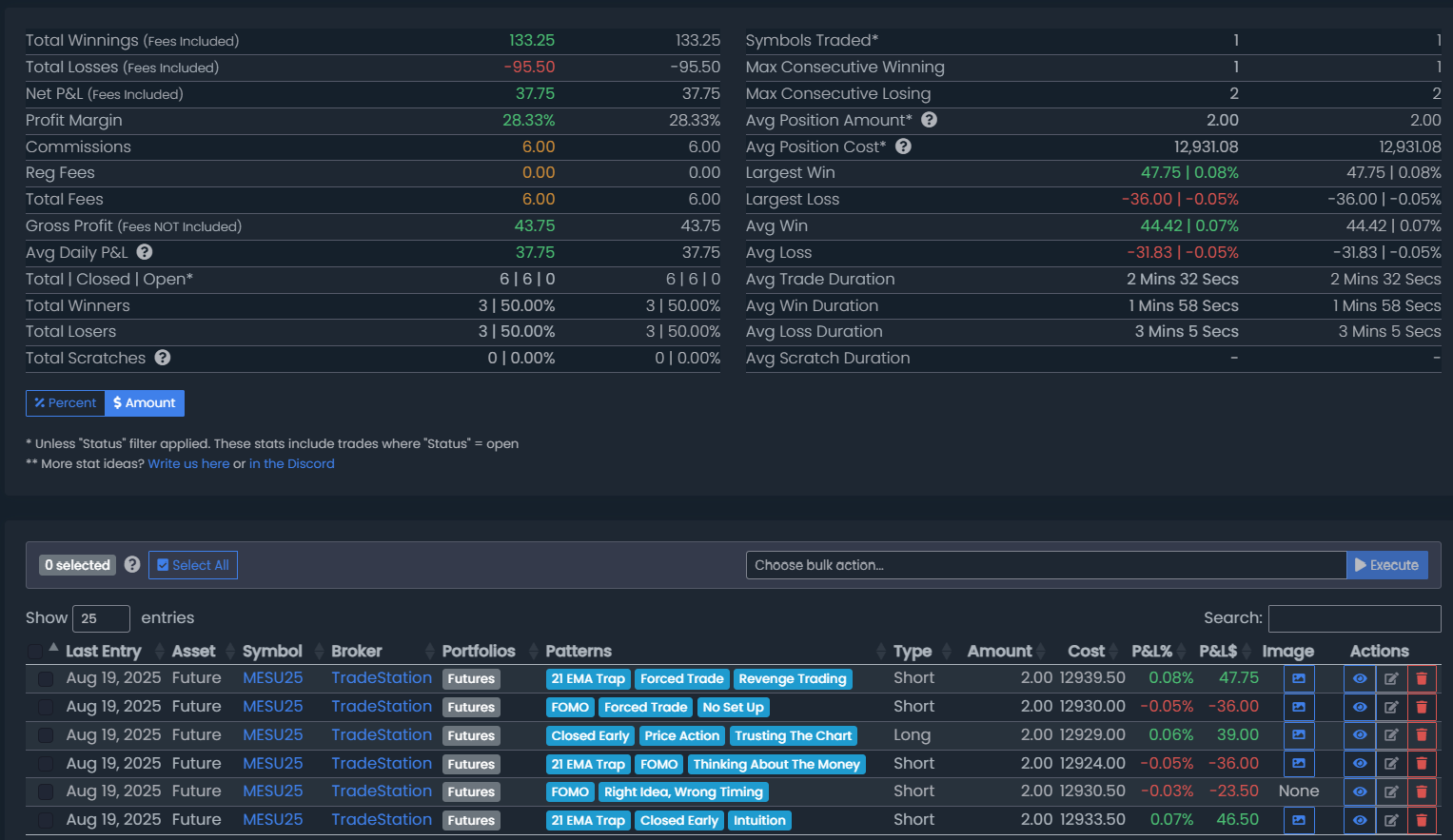 August 19, 2025 ( 6 Trades) (+$43.75)