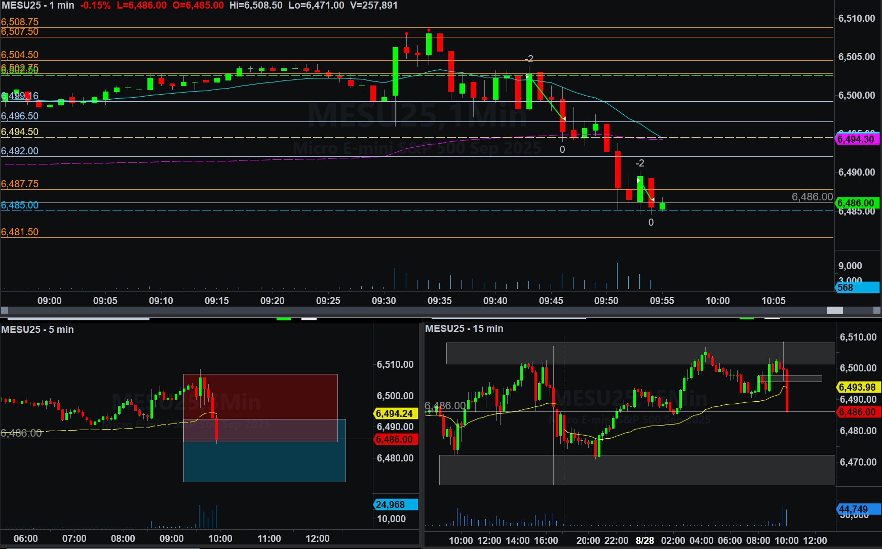 Trade 2 - Short 2 MES @ Intuition + Momentum + Forced Trade