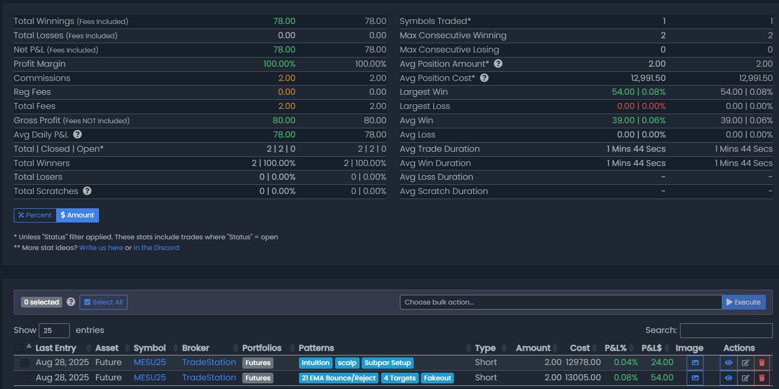 August 28, 2025 (2 Trades) (+$80.00)