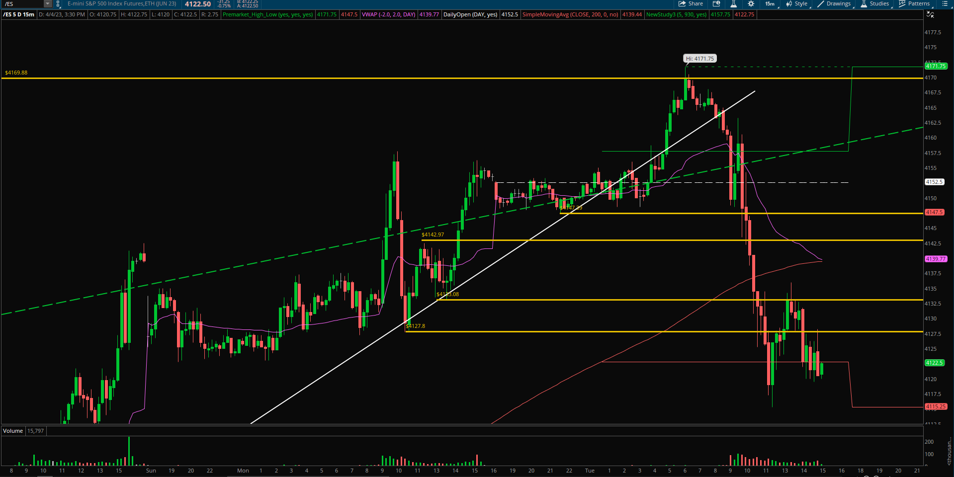 - Each gold line is a spot based on premarket, Ydays high (not on chart but should be), Ydays lower high, Ydays lower low, and Ydays LOD. These spots are the perfect spots for retail to try to catch some reversal on this massive downtrend and in a lot of these zones we just rocketed through it which was another slight indication that we are going to continue lower fast.