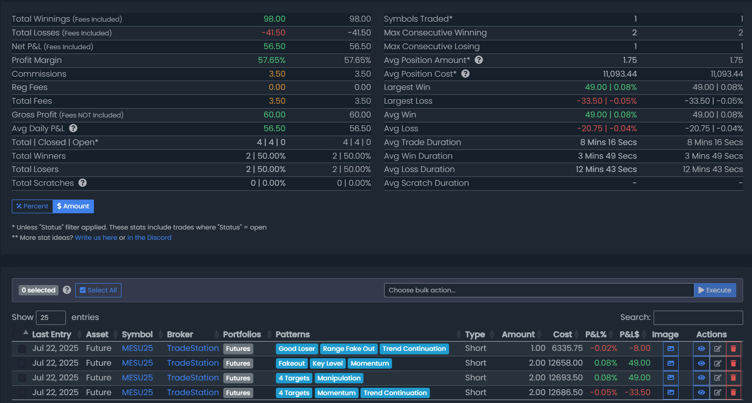 Trade 4 - Short 1 MES @ Range Fakeout + Trend Continuation + Good Loser