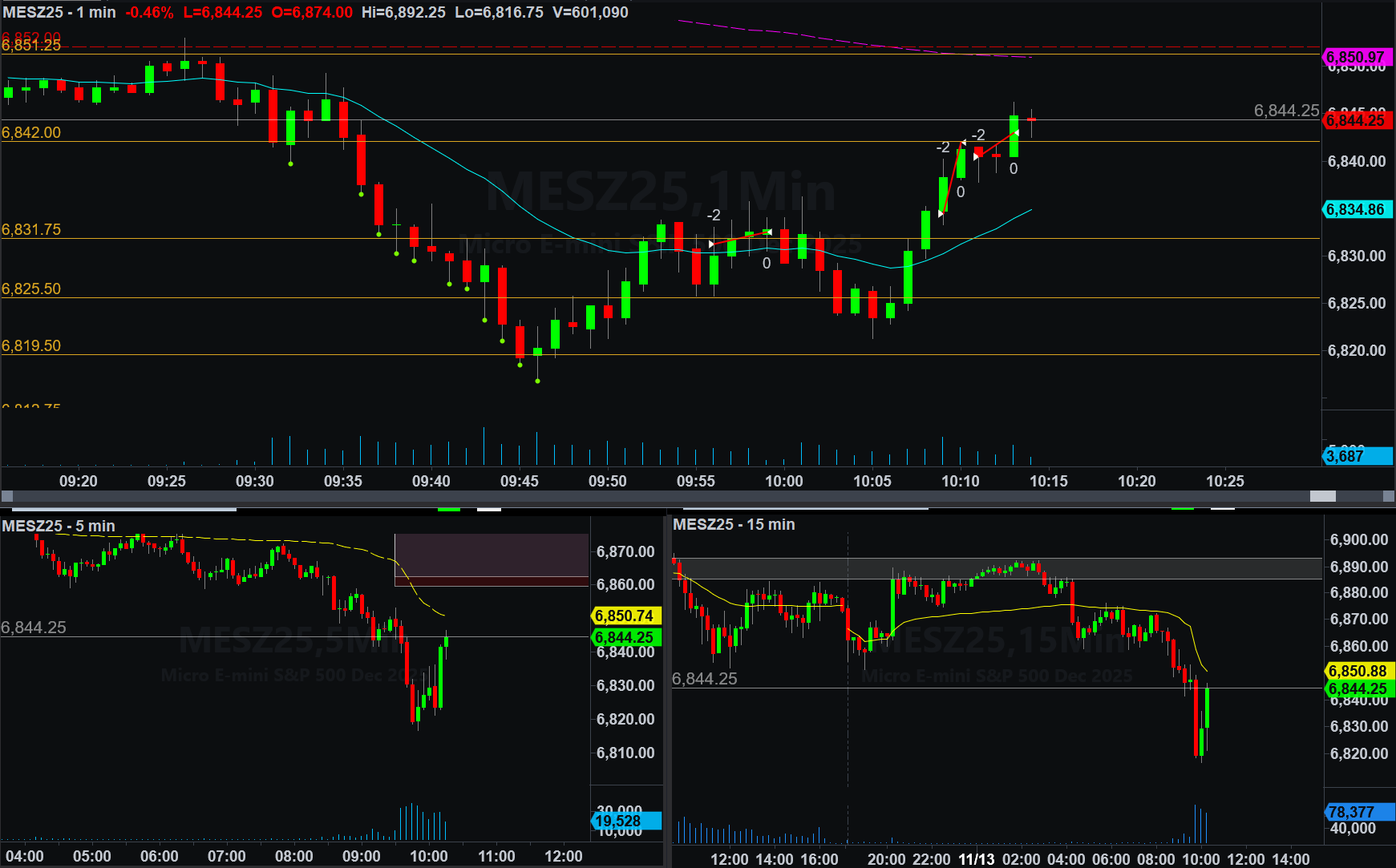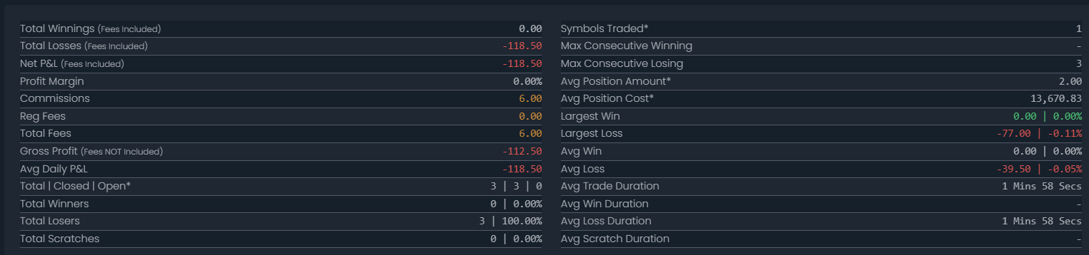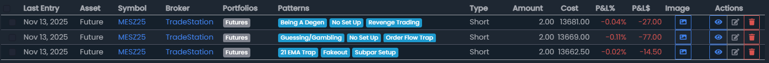 Day Summary: Another day of impatience costing me. Had i just been more patient today, I would have had some decent opportunities to take the market short. However, I took a subpar first trade after watching the market dive out of the gates which gave me FOMO. Then, even though it was subpar, Trade 1 would have worked which gave me more FOMO and ultimately led to me taking a poor trade based on emotions alone. I was literally making up a reason to trade (Order Flow gap) and took a quick L. I then revenged traded on the next candle and was also stopped out of that trade just minutes after entry. I kept the third loss small thankfully but at that point I knew I had to shut it down, which was the righ decision and starting to impliment good habits, but I noticed after that had i just waited, I would have had better short opportunities. So Patience is the word of the day.