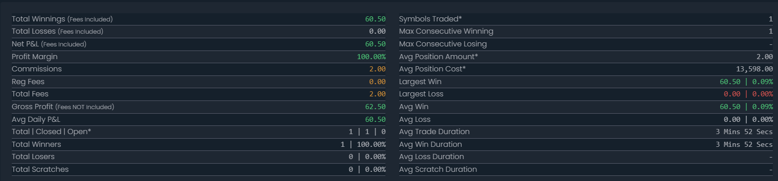 - exit candle bounced 2 ticks from my preset TP and then I just bailed mostly out of fear that we could rip long (which we ended up doing just a minute or two later) but still not really a good thing to be making decisions out of fear
