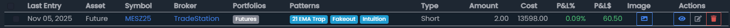 Short 2 MES @ 21 EMA Trap + Intuition + Order Flow + Key Level