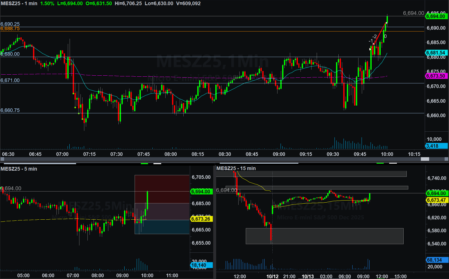 Trade 3 - Short 1 MES @ Momentum + Intuition + Aggressive Entry