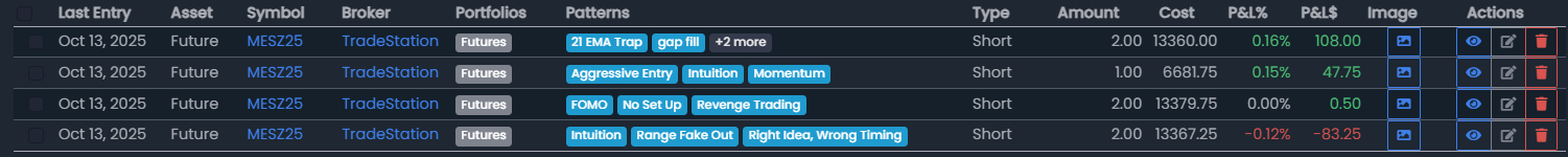 October 13, 2025 (4 Trades) (+$80.00)