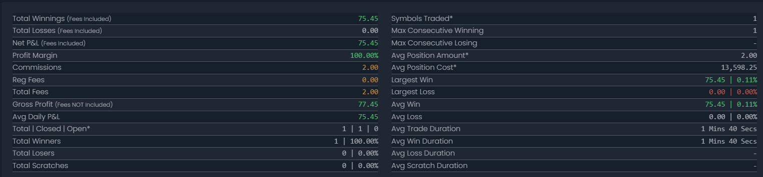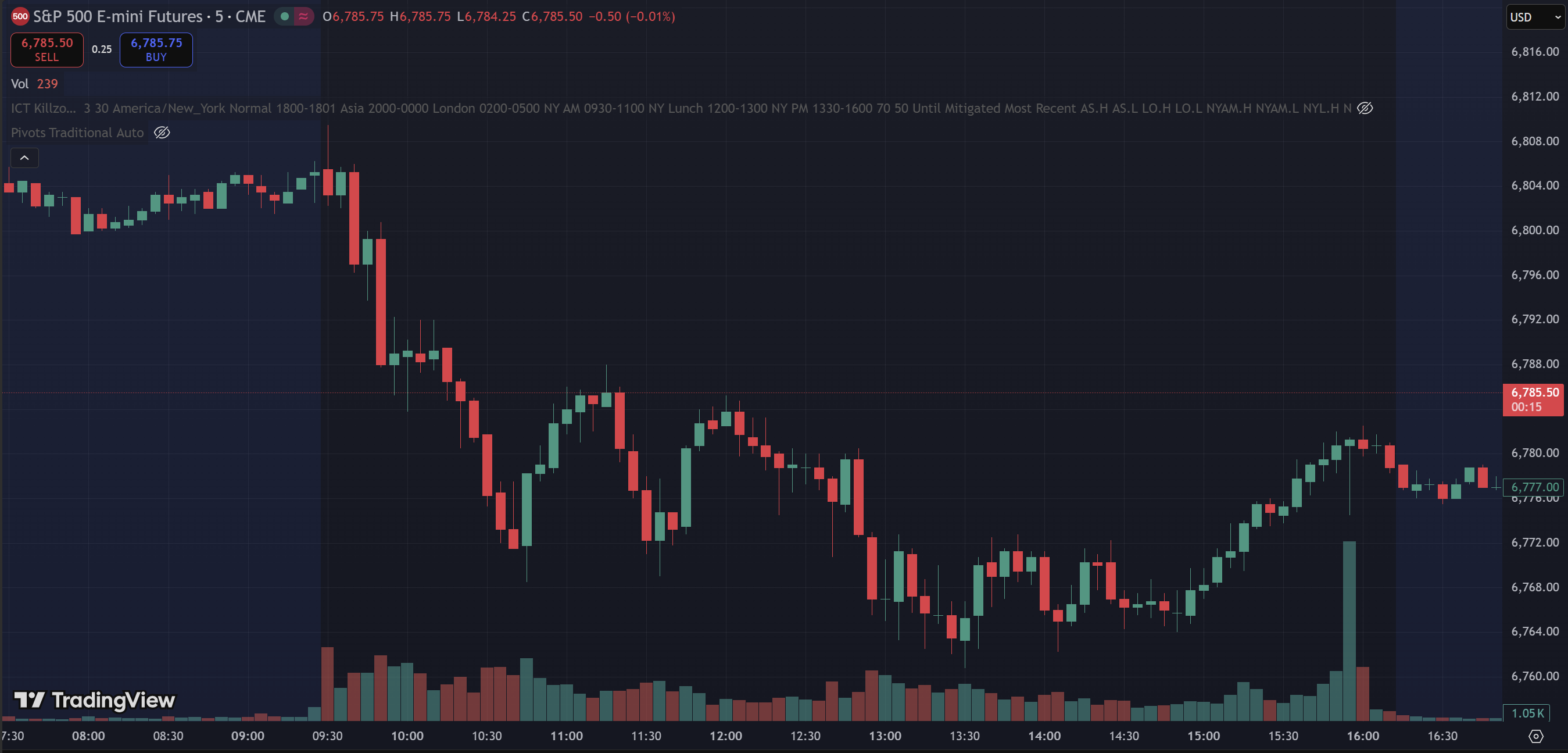 Today showed just how easy trading can be when you focus on the process, are patient for your set up, and execute the system accordingly. I initially was trying to get a slightly better entry so I only entered one contract, but got in the second contract not long after, and at the perfect time too because it almost dropped straight to target on the same candle. The only thing that reduced my grade from an A+ to an A today was that I didn't hold fully to target. After the quick drop almost to TP (6789.50), and then a pop back up, I got a little emotional that it was going to reverse on me and take away my gains, and based just on the fact that I have been struggling lately, it was enough to convince me to take off the position. Target would have hit just seconds later, but I needed this one and I am happy in how I executed the system.