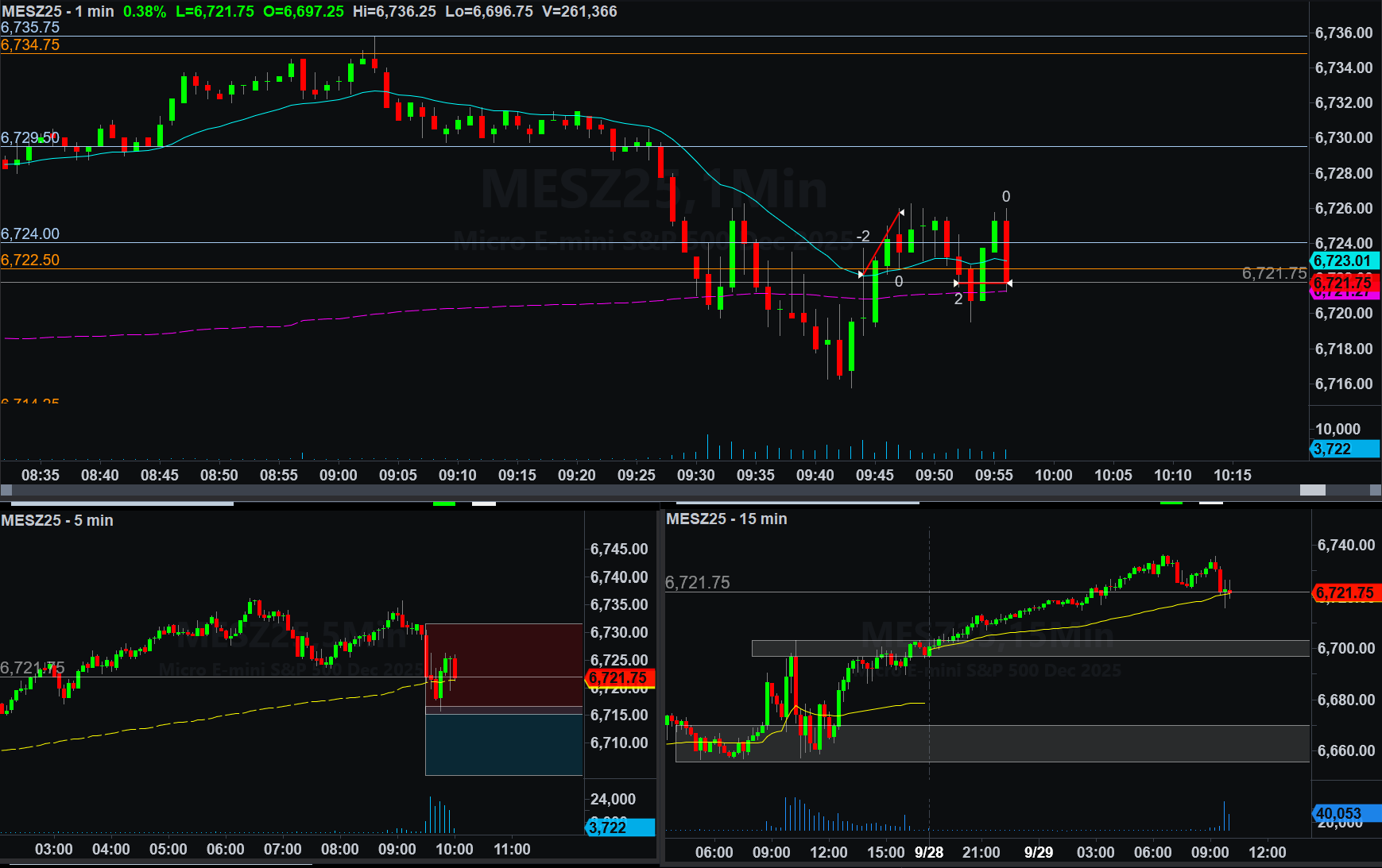 Trade 1 - Short 2 MES @ 21 EMA Trap + Key Level + FOMO (from PM missed trade (see Day Summary above))