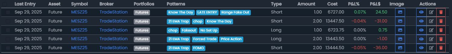- Trade 1 I can justify taking for trend continuation because of the premarket momentum, but after that, once realizing it was a choppy morning, I should have been looking for range fakeouts