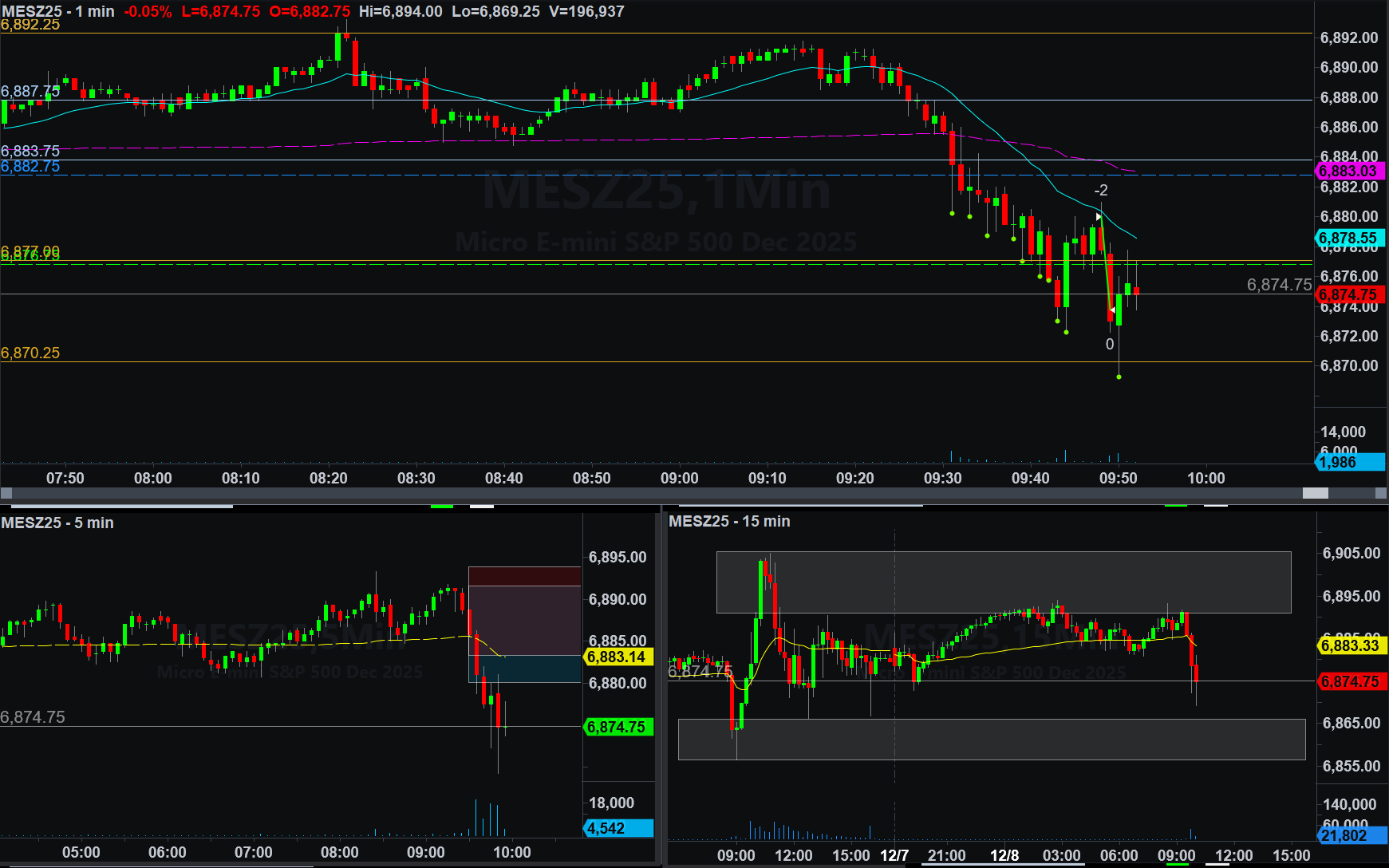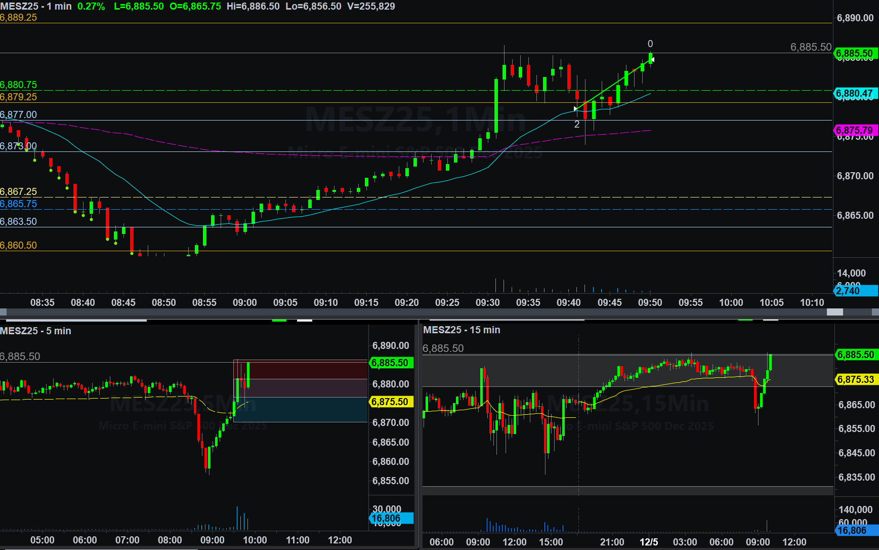 | Dec. 3, 2025, 10:35 a.m. | Future | MESZ25 | TradeStation | Futures, | Held Winner, Price Action, Trusting The Chart, | Long | 1.00 | 6840.00 |