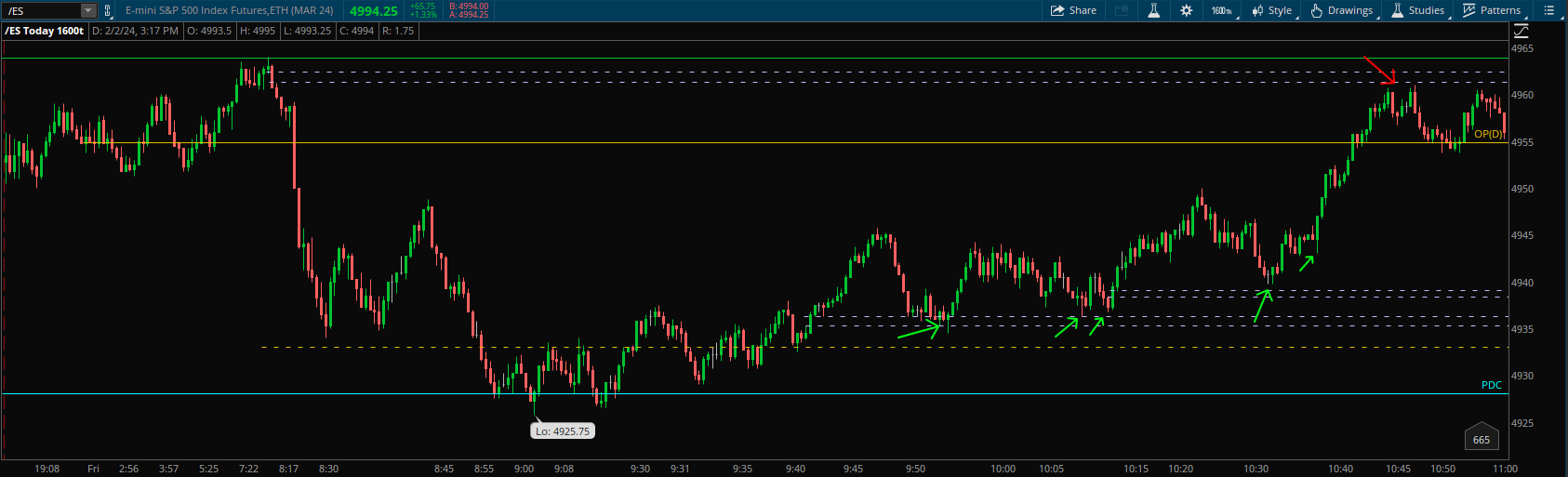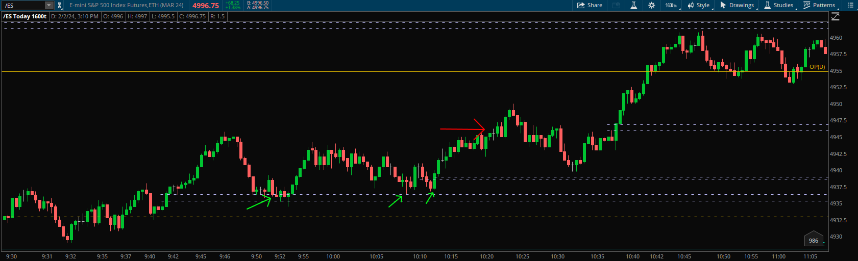 Alll of those scalps wouldve worked great but there is also another way to trade it that makes a bit more sense. Had I gotten in on lowest BISI then held for retests on every other lowest BISI that continued afterwards and then have targets at various staged int he trend but mostly targeting the highest SIBI I couldve made multiple multiple thousands of dollars. Its really a shame that I do this to myself and dont take these trades. This trade wouldve been nearly 20 points profit with 5ES and that is $250/pt so thats a $5k win if I just held and traded the plan accordingly. Since it was 4/4 and we are in massive bull trend and META was up 20% I couldve even held a runner for another $1k profit so today instead of being down $330 like a fucking dipshit I should have walked away with over $6k but obvbiously that wouldve been insanely difficult to achieve. I think my system needs to be a bit more retarded and if we have 4/4 and its just receeding and receeding and receeding from OP and there is no looking back then its just time to get in add and hold like a fucking king.